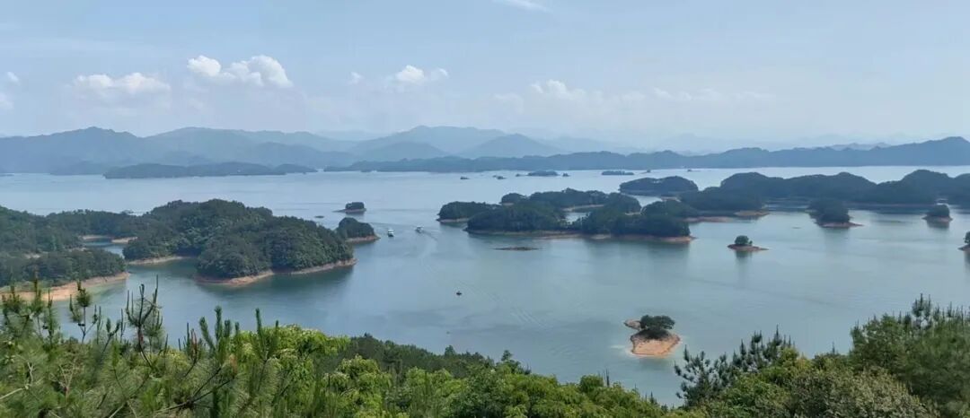 来千岛湖了就得好好赏景,因与钱塘江、富春江、新安江逶迤相接,益发悠长壮美。那水色,浓浓淡淡,浅浅深深,浅淡似翠绿的丝绸,深浓如湛蓝的大海。外来人进了千岛湖,眼瞳先被染绿,心也被水陶醉,“农夫山泉,有点甜”。没有比这句广告语更能形容千岛湖水的味道了,清洌中透着微甜,是甘露,也是山泉。